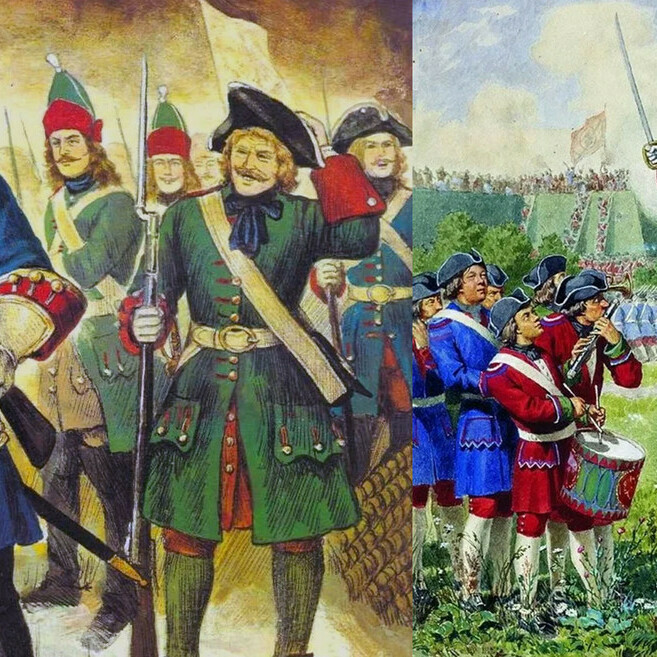 - В 1691 году потешные войска получили правильную организацию и разделились на два пехотных полка — Преображенский и Семёновский.