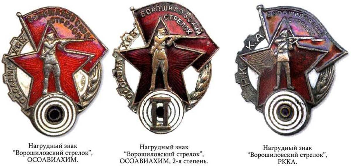 - Значок 1-й степени вручали за отличную стрельбу из малокалиберных ТОЗ-8 или ТОЗ-9 и боевой винтовки.